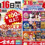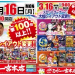 こんばんわ よっしーです。 さて明日は新台入替ではなく、一宮本店レイアウトの変更だよ。 色んな人気機種から新台まで、低レートで打てちゃいます。 新台入替と違って朝から打てますので 是非明日は朝から人気機種を打と…